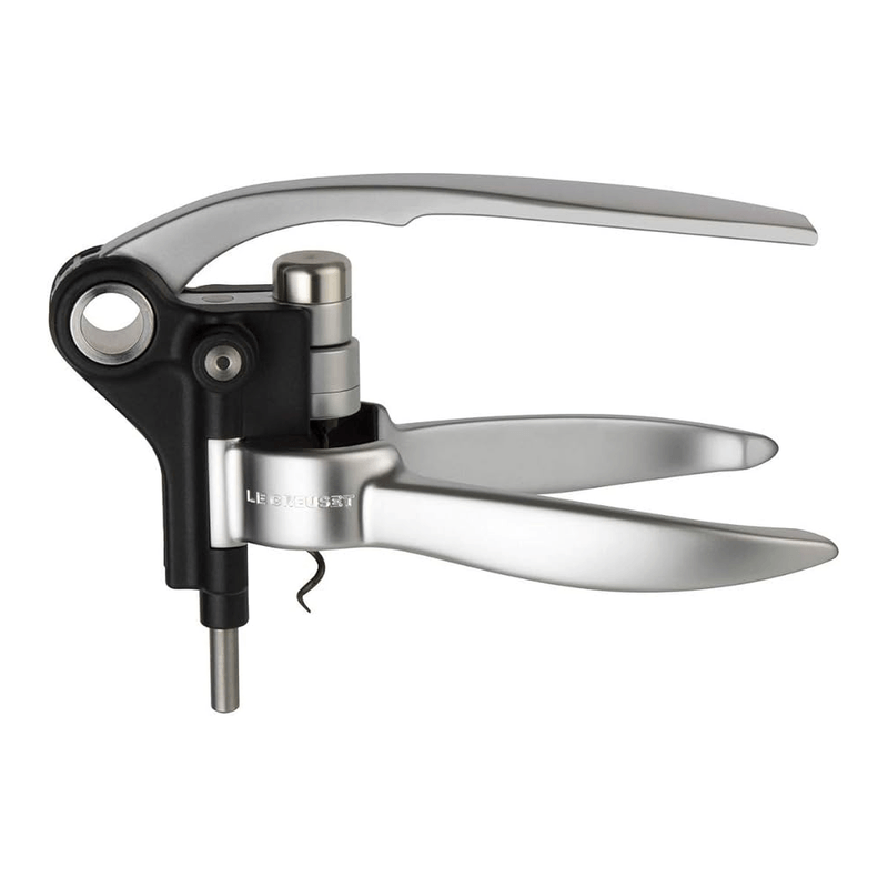 Saca-rolhas modelo alavanca Le Creuset, design compacto com sistema de alça exclusivo, presente ideal para apreciadores de vinho, adequado para todos os tipos de cortiça, graças à tecnologia de rotação Mecanismo refinado, remoção rápida e fácil da cortiça da garrafa, graças ao simples movimento da alavanca por movimentos repetitivos.
